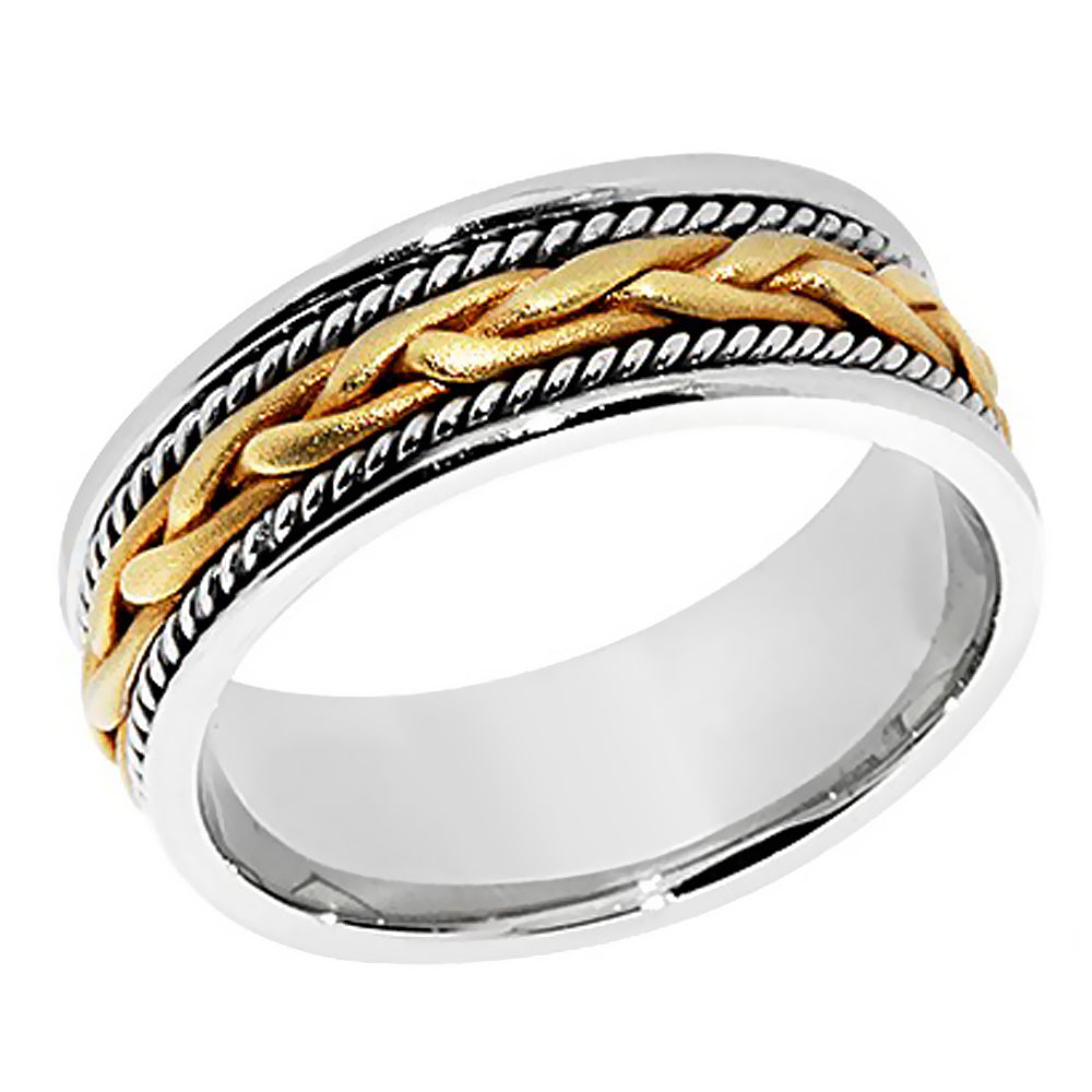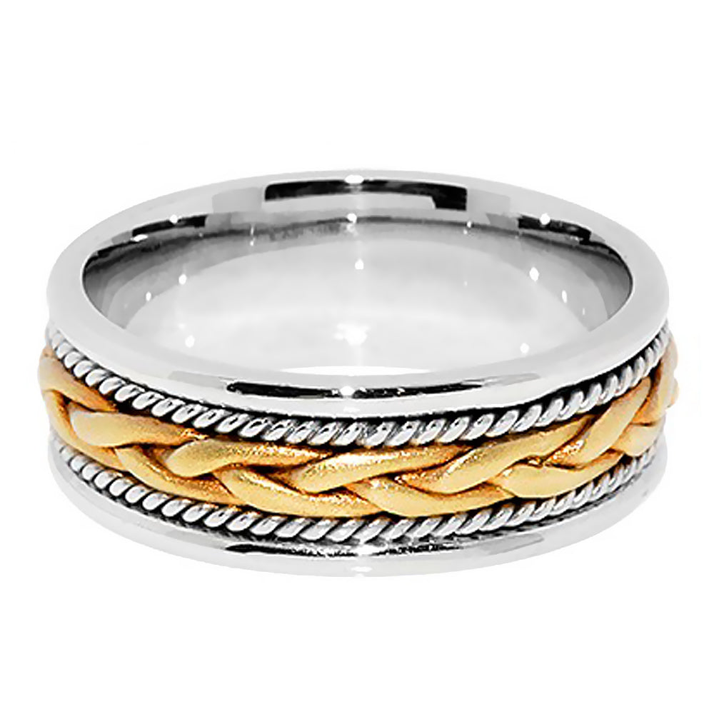 7MM Hand Braided with Rope Two-Tone Gold Wedding Band