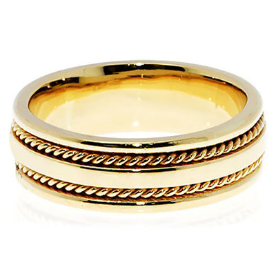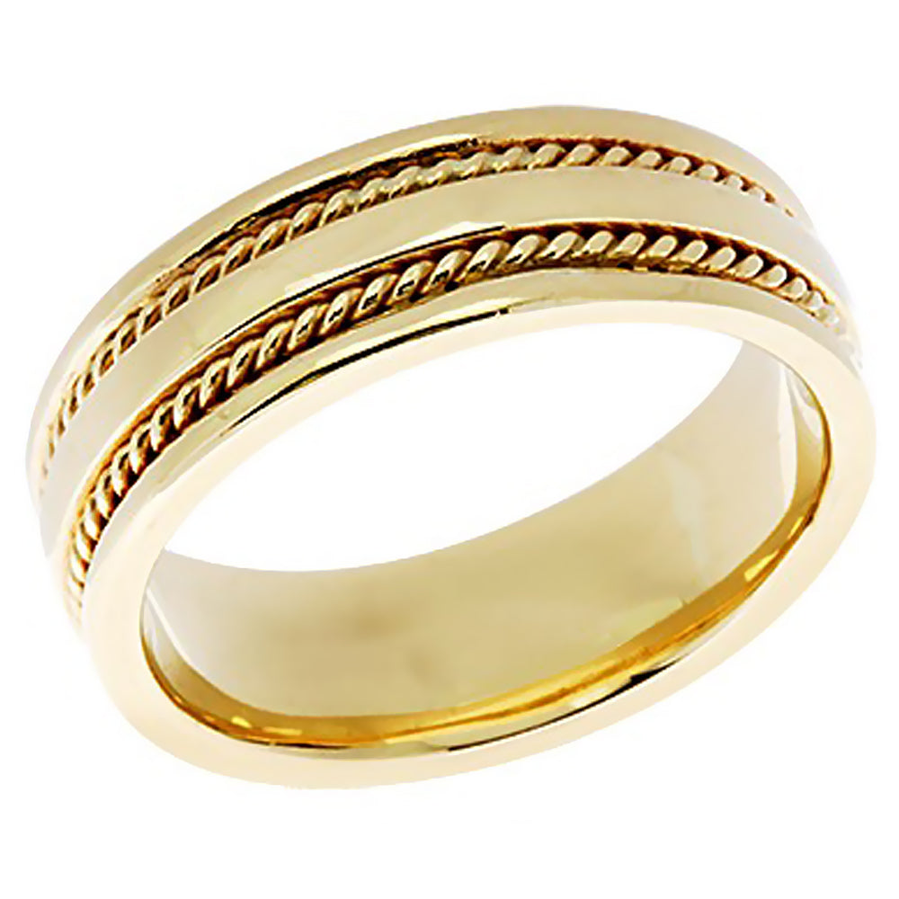 7MM Solid 14k Gold Two Rope Accent Wedding Band