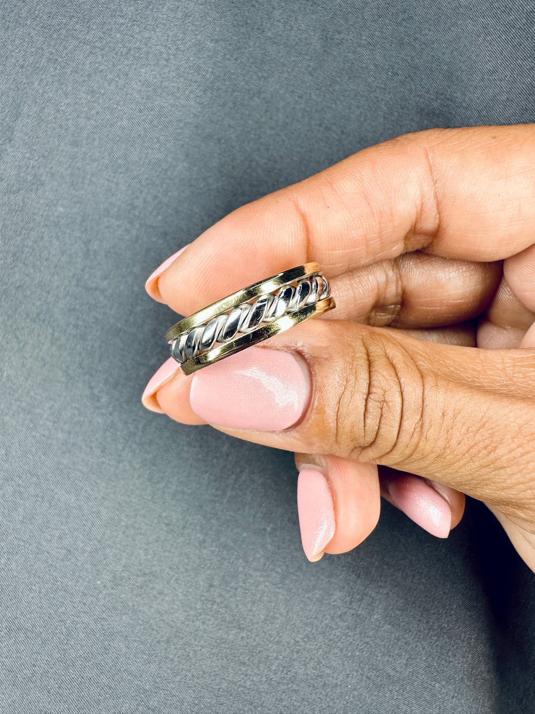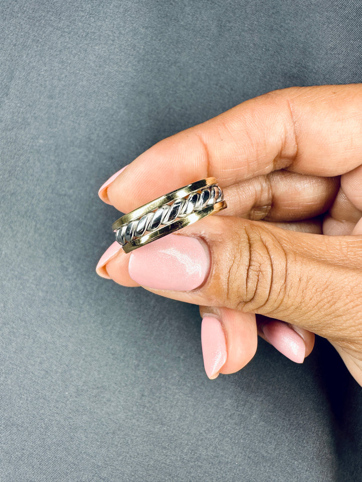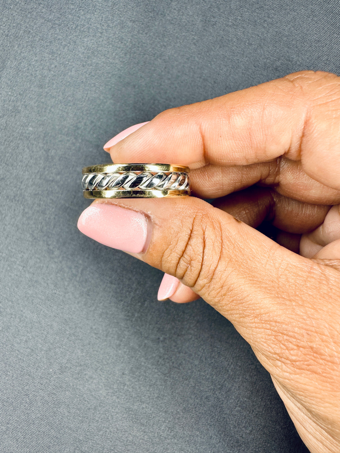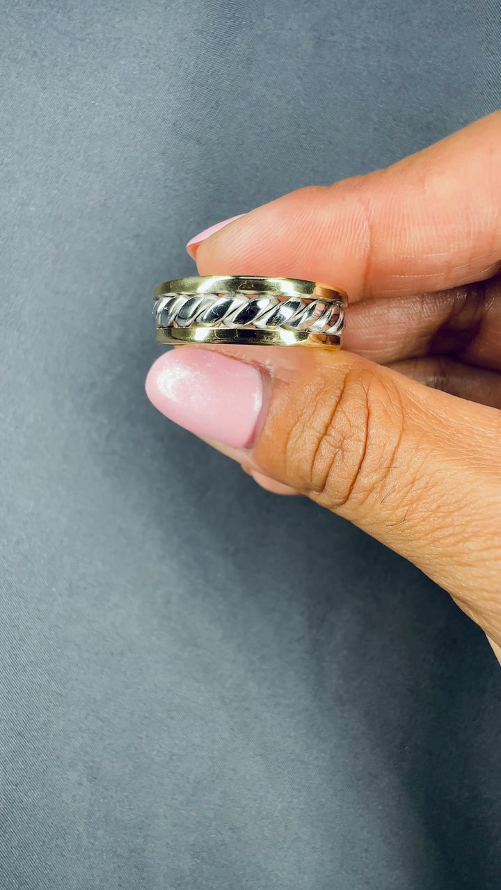 7MM 14k Solid Two Tone Gold Rope Twist Wedding Band