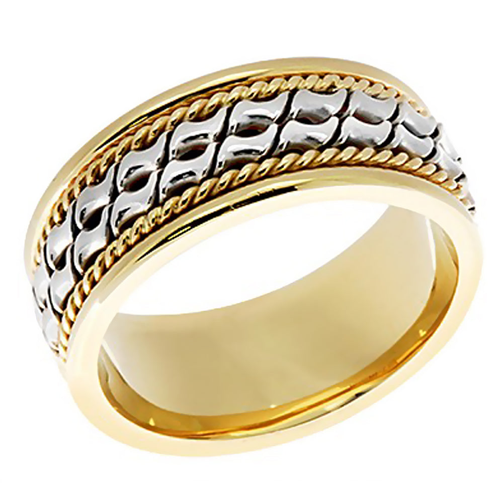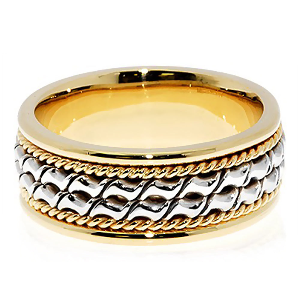 7MM Two Tone Gold Double Unique Design with Yellow Rope Wedding Band