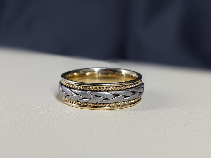 7MM 14k Two Tone White Soft Braid With Yellow Gold Rope Wedding Band