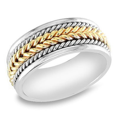 7MM 14k Solid Two Tone Gold Center Hand Braided with Rope Wedding Band
