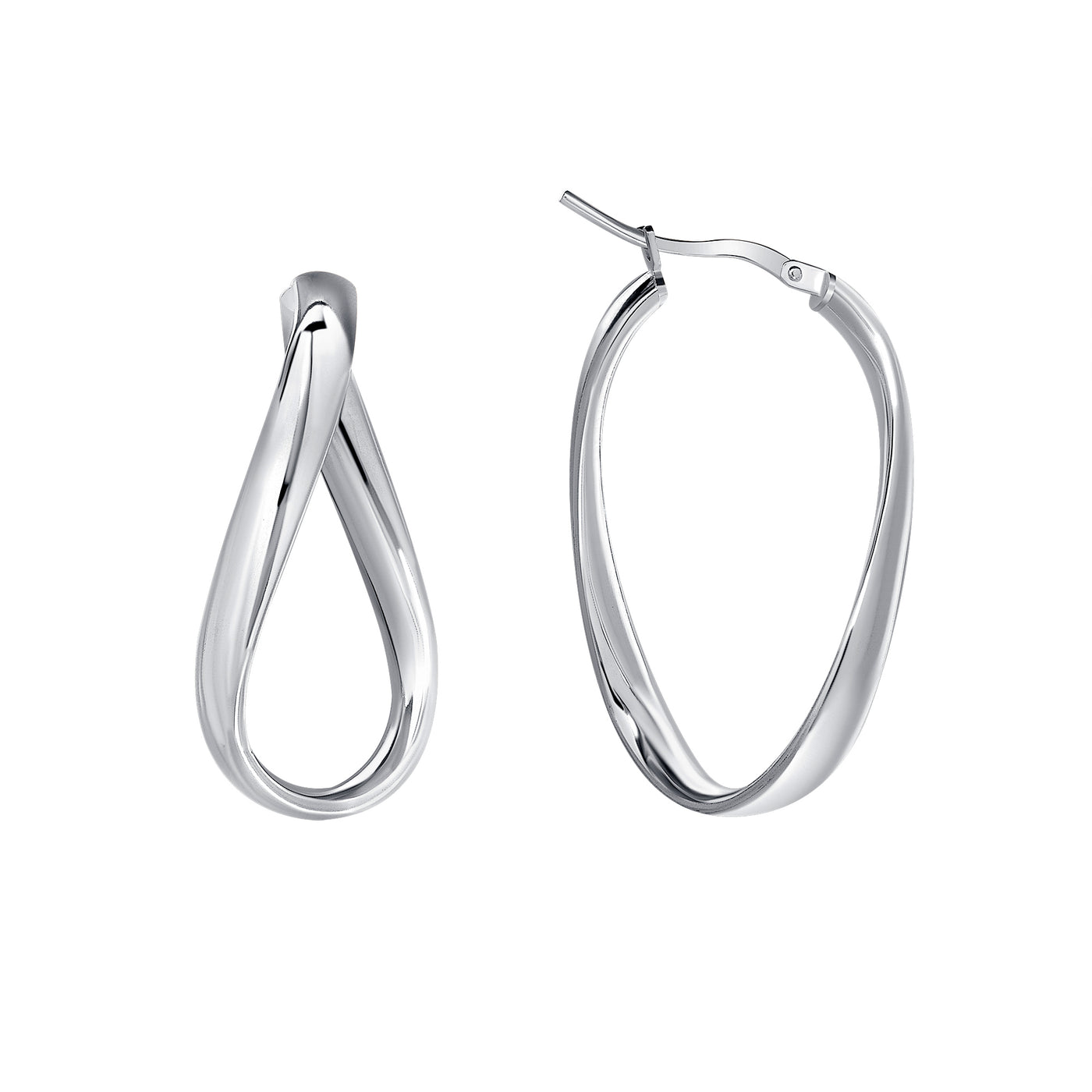- Oval twisted ribbon high polished with a secure hinged click closure hoop earrings.