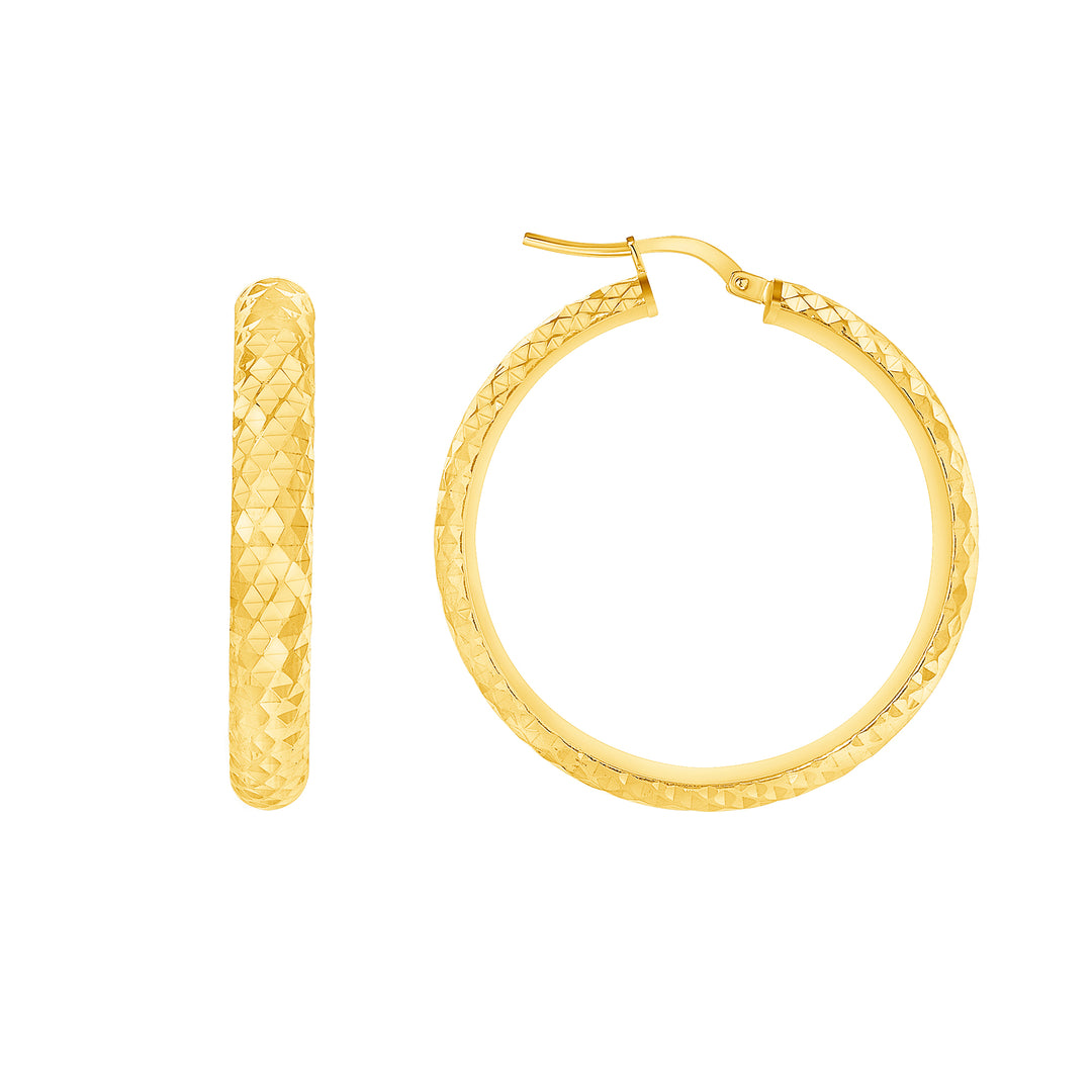 Italian Sterling Silver Gold Plated 35mm Diamond Cut Textured Lightweight Hoop Earrings