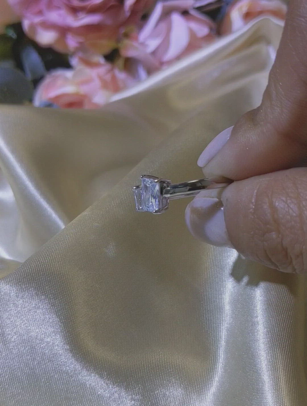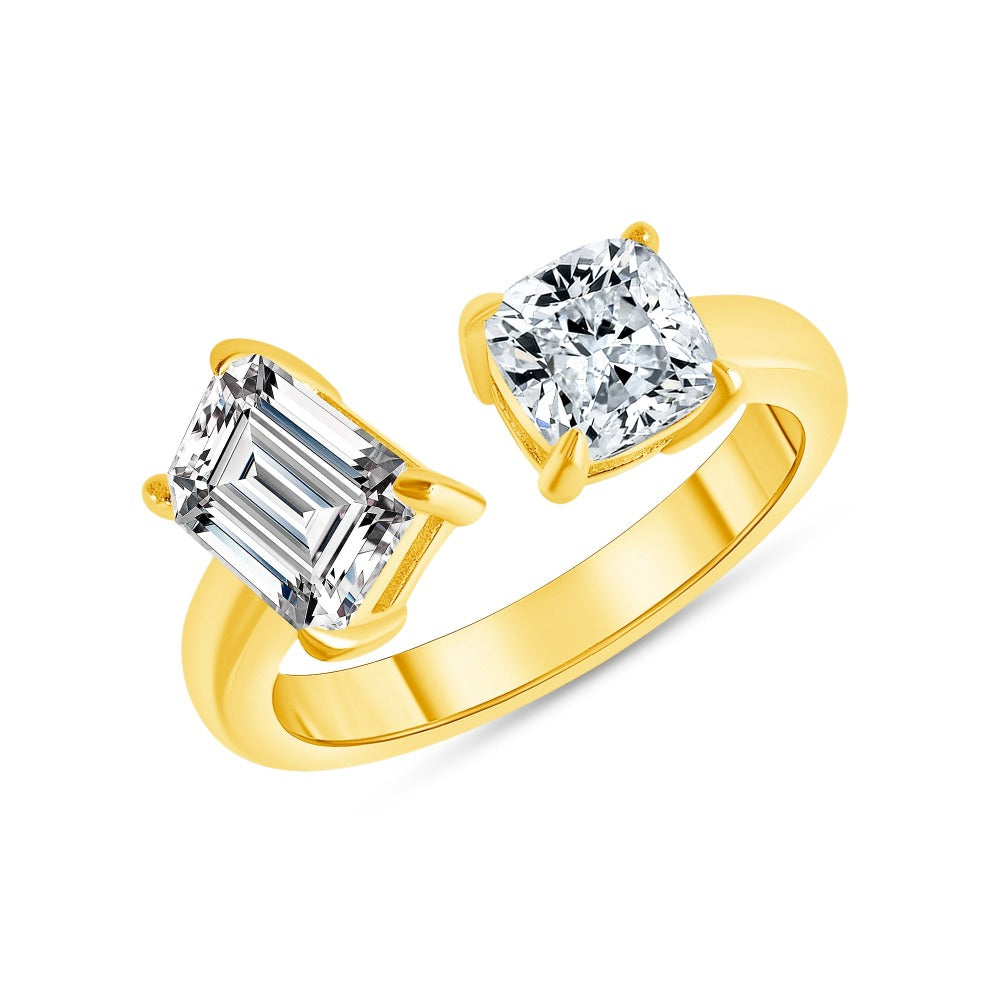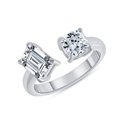 Two Stone Emerald and Cushion Cut Diamond Engagement Ring 1.00 Carat