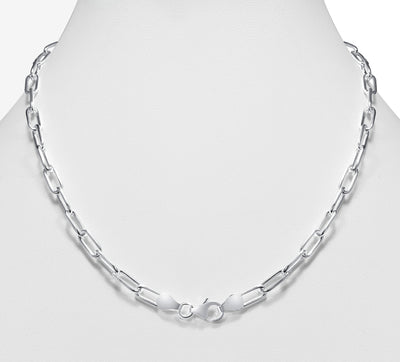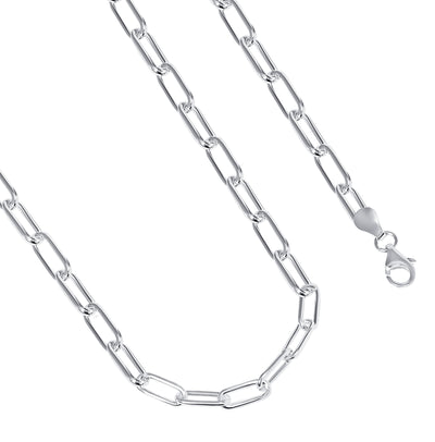 Italian Sterling Silver 4mm Paperclip Link Chain Necklace, 16"- 24"