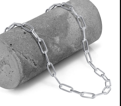 High shine large oval rectangle paperclip links chain necklace, made of the highest quality 925 Italian Silver. Paperclip is modern, chic and stylish. Adds elegance to any outfit, the perfect gift for anyone.