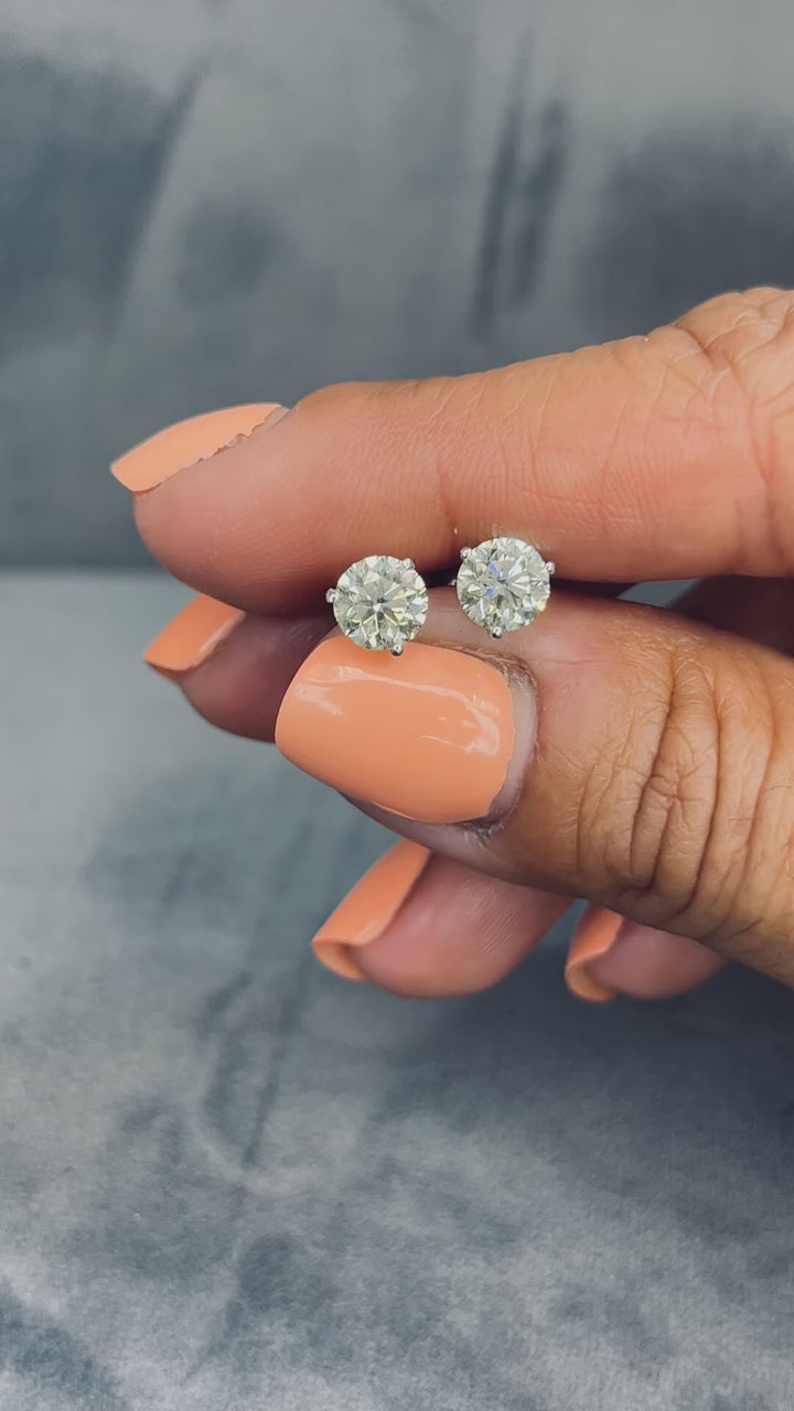 Platinum 3-Prong Round Cut Diamond Stud Earrings 2.00 ct. tw.