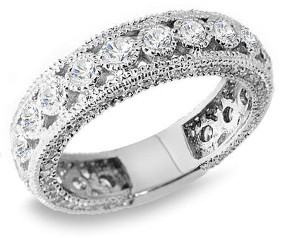 1.40 Ct. Tw. Brilliant Round Cut Diamond Vintage Style Eternity Ring in Platinum