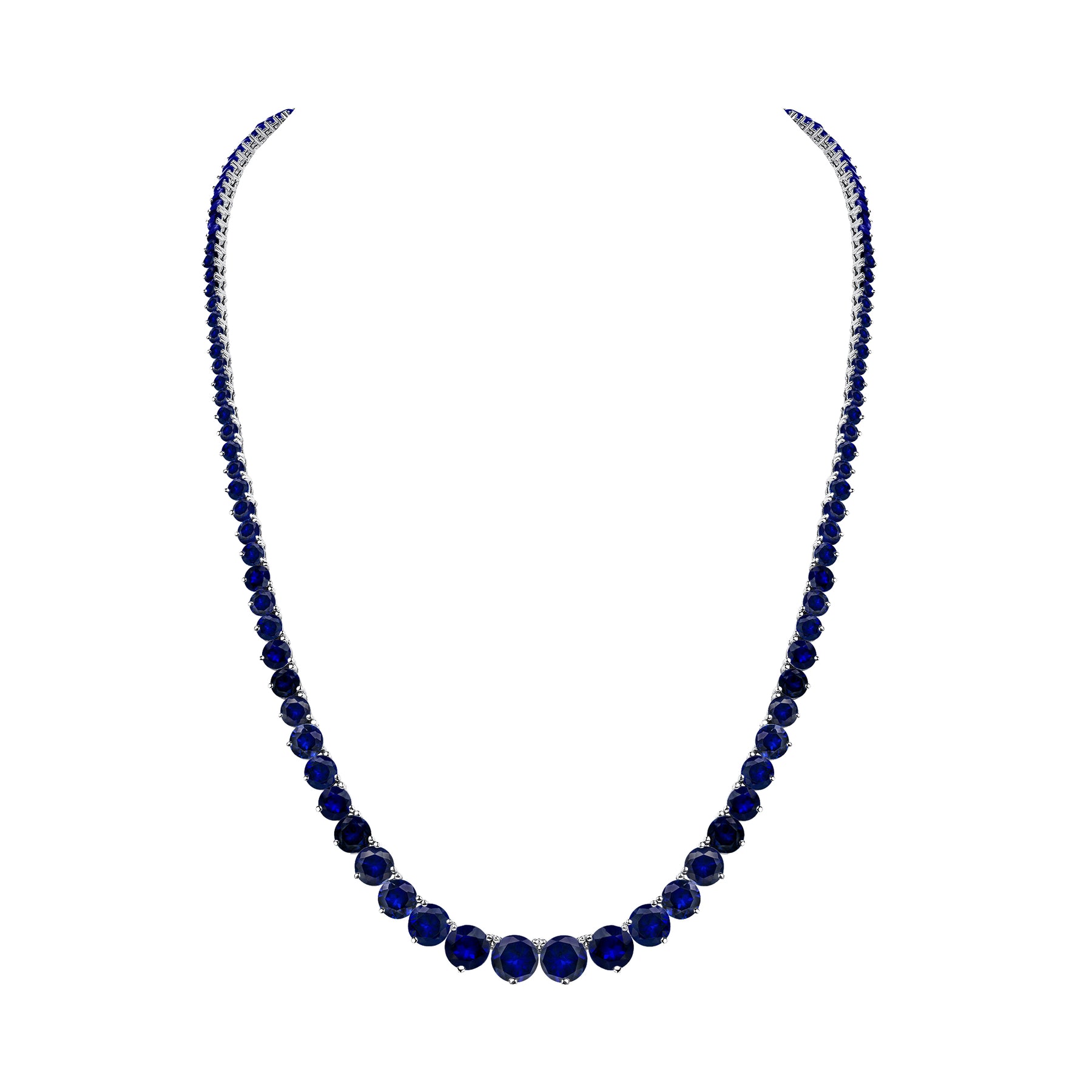 Riviera Round Brilliant Cut Natural Blue Sapphire Necklace