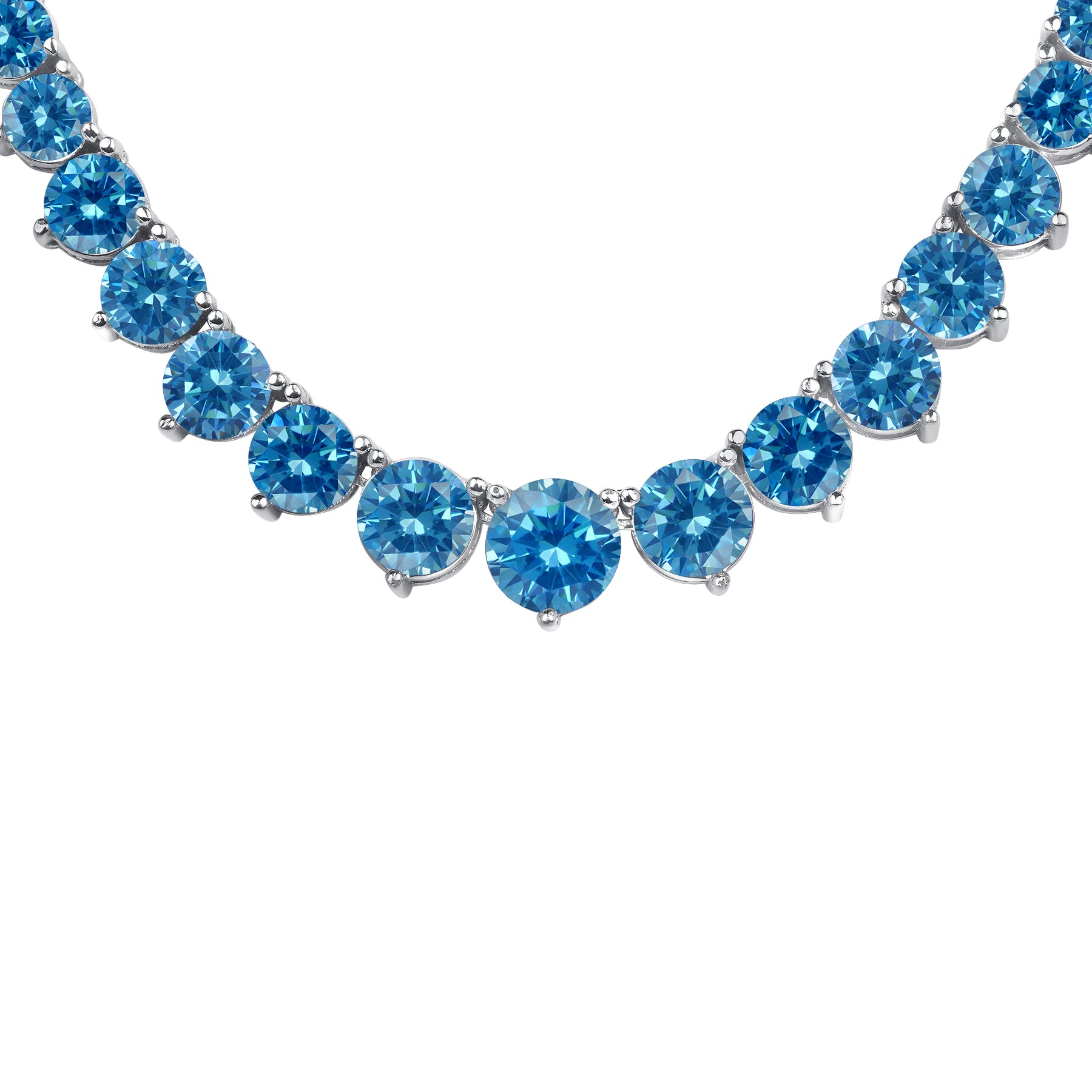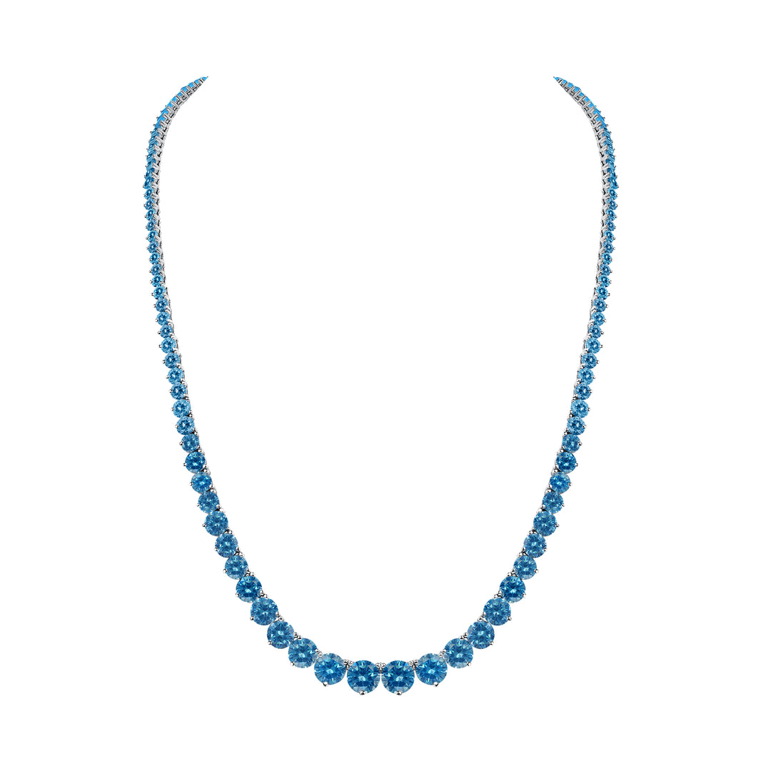 Riviera Round Brilliant Cut Natural Blue Topaz Necklace