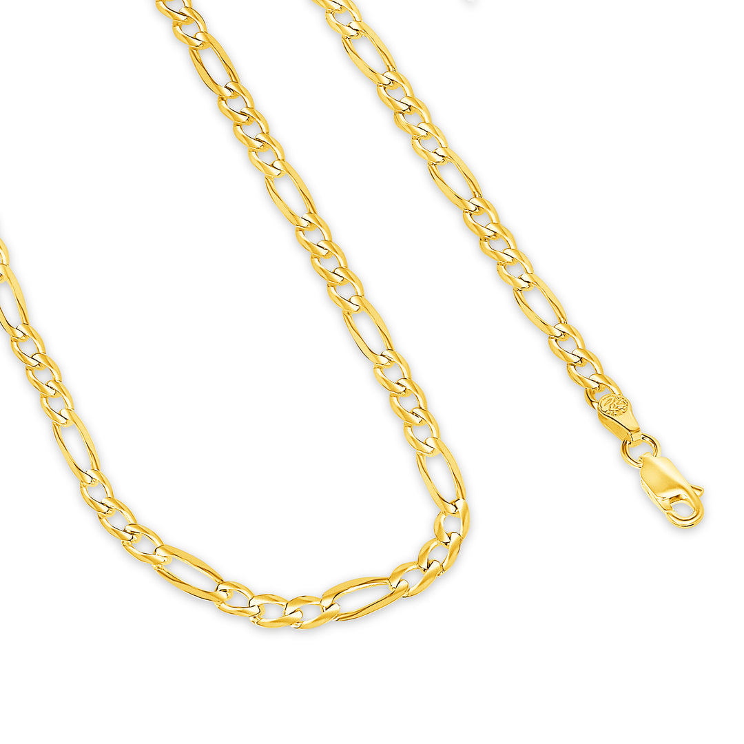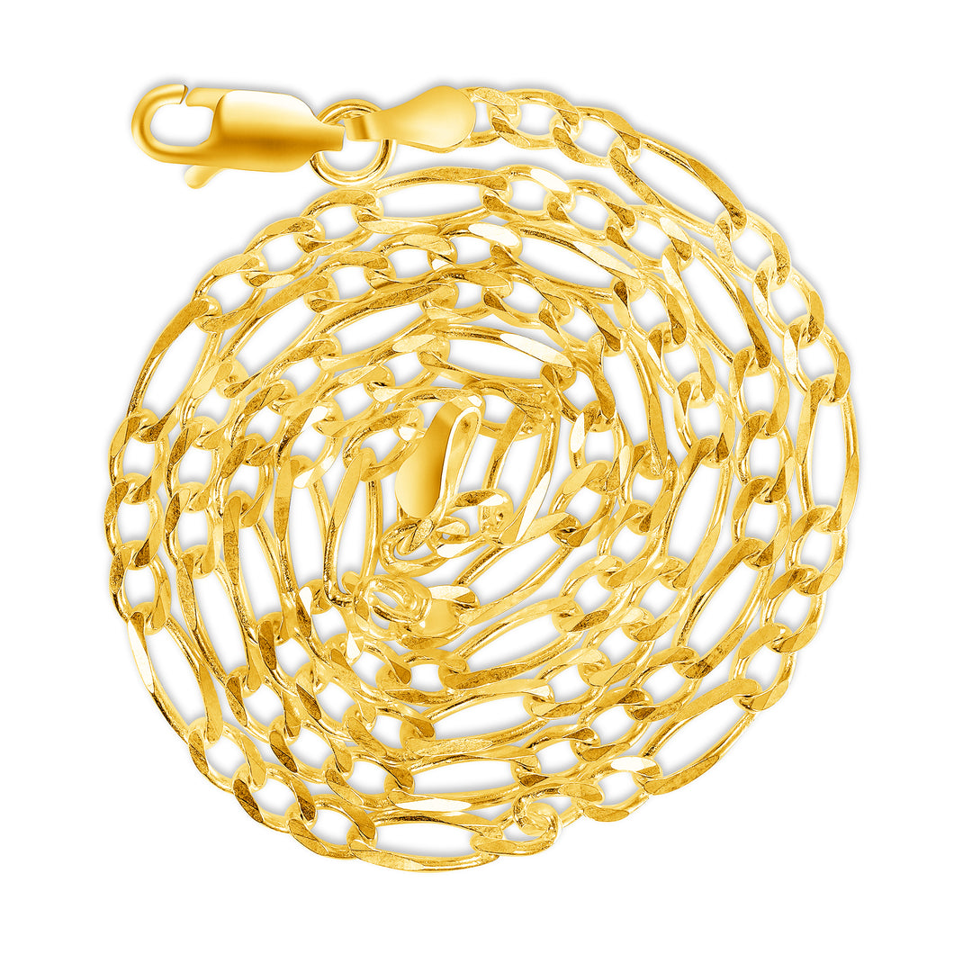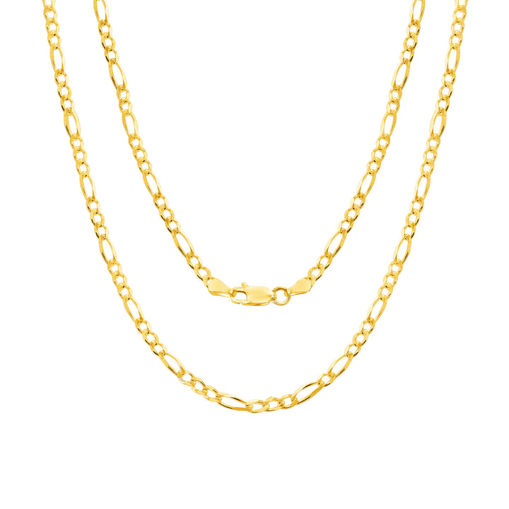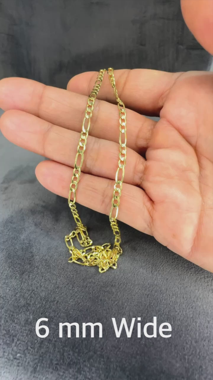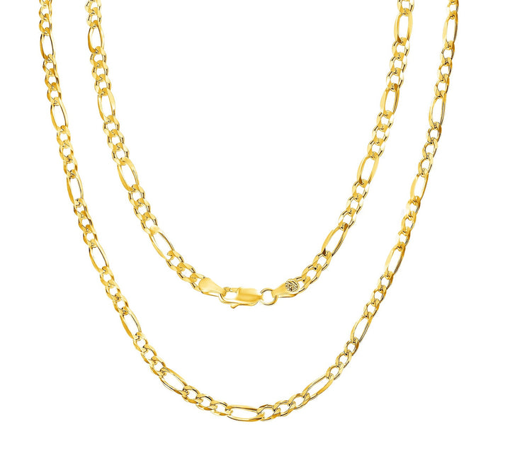 Solid 14K Yellow Gold 3 mm-7.5 mm Figaro Link Chain Necklace 16"-26"