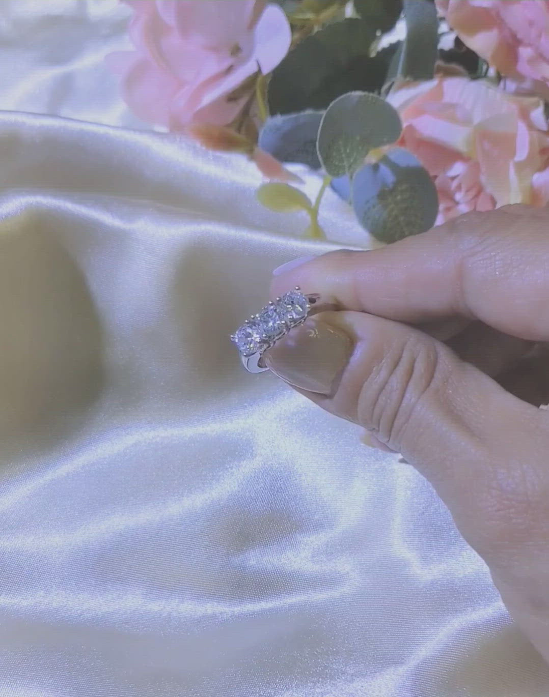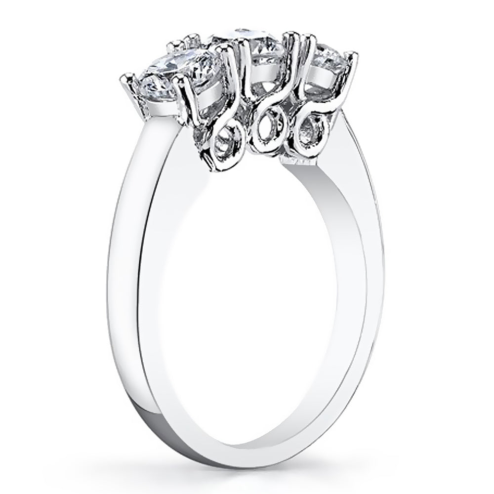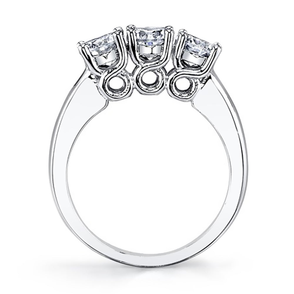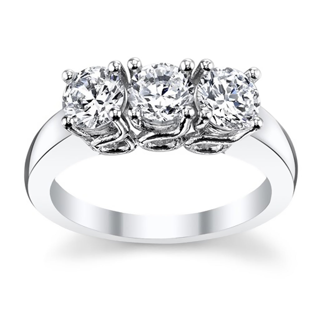 Three stone brilliant round diamond ring has a center stone that may be customized to weigh anywhere between 0.50-2.00 ct. tw. surrounded by 0.50 ct. tw. round cut side diamonds all in a basket 4-prong setting. Handcrafted in 14k Gold, 18k Gold, or Platinum 950 setting. We also offer 1 year Layaway program. You can reach us at 1-888-967-5353 to speak to one of our jewelry specialist.