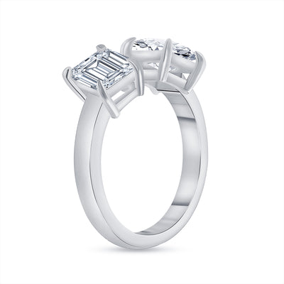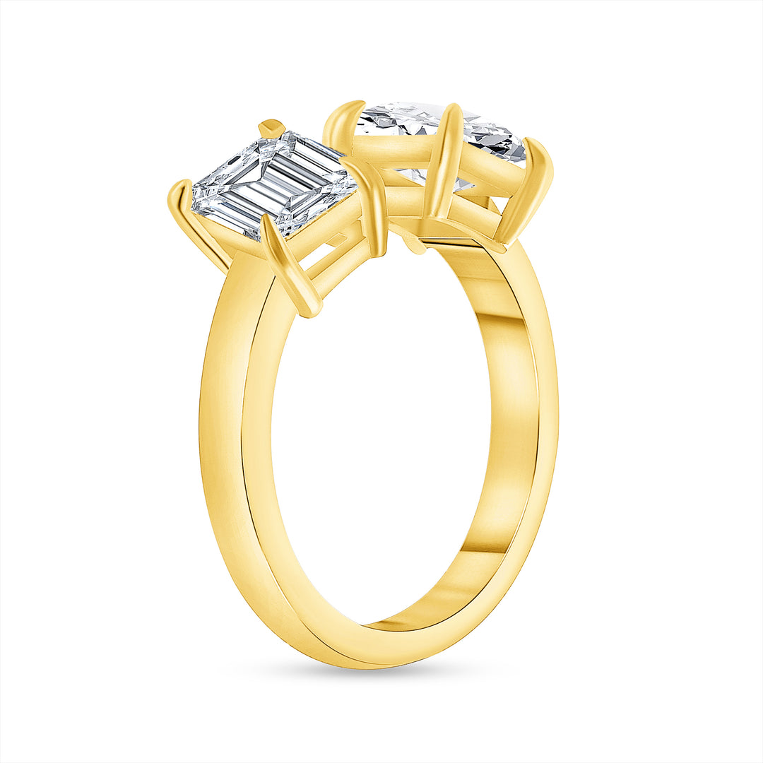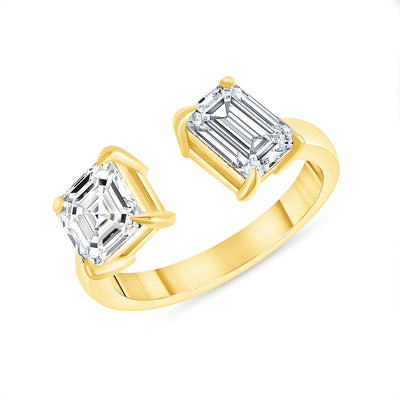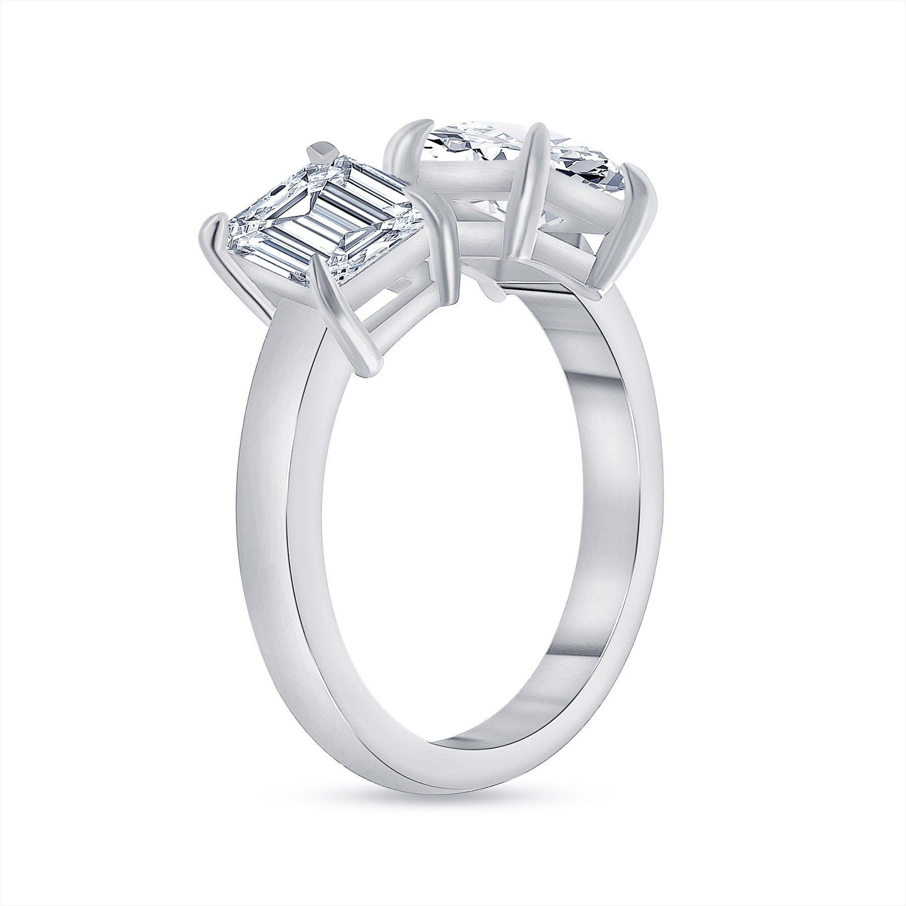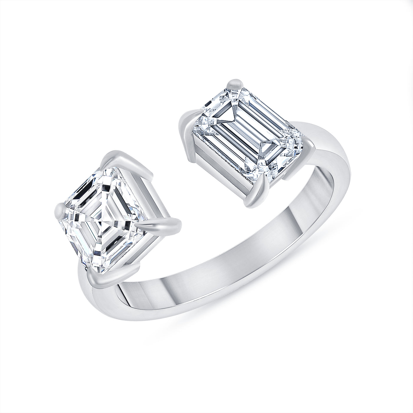 Two Stone Emerald and Asscher Cut Diamond Engagement Ring 1.00 Carat