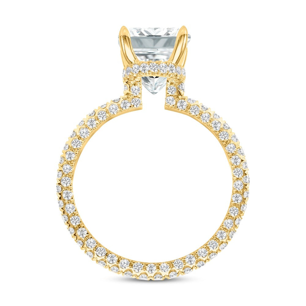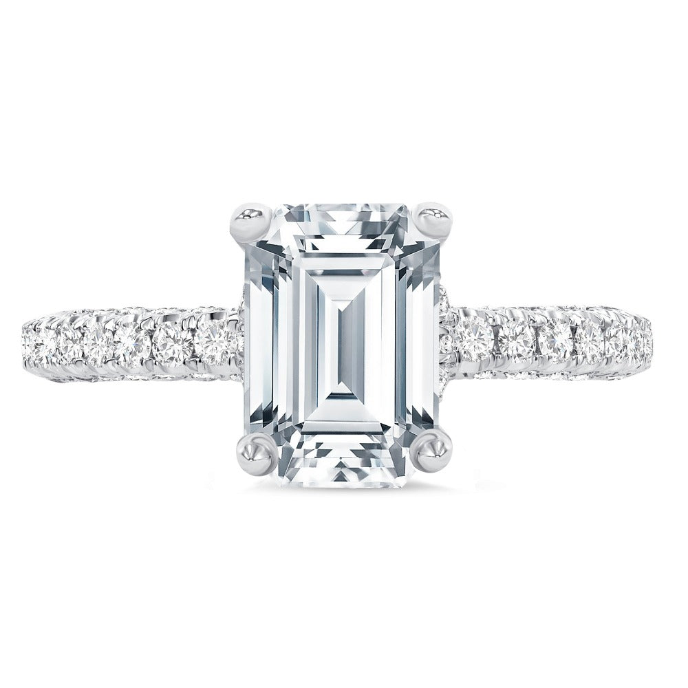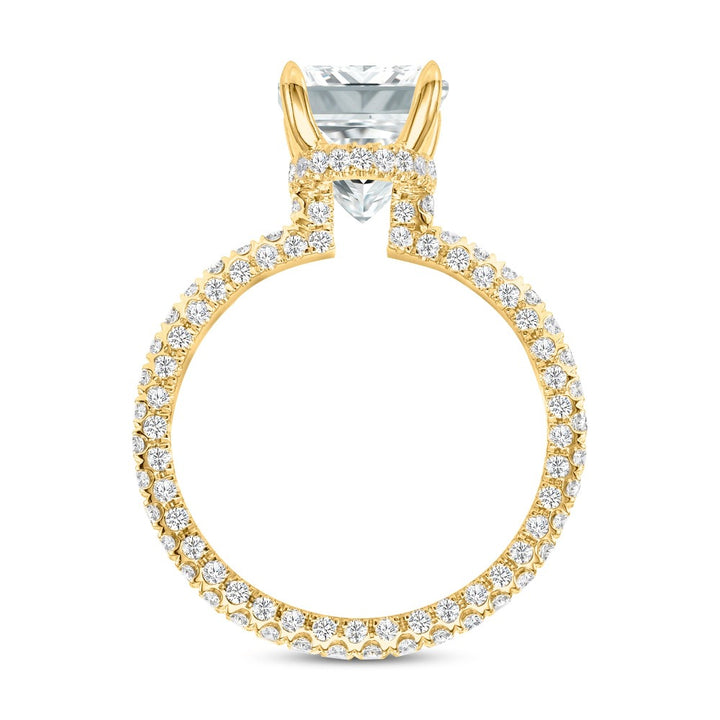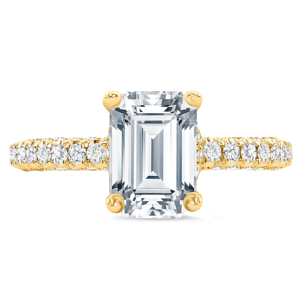 This hidden halo 1.50 ct. tw. diamond engagement ring has emerald cut center stone diamond that can be customized to weigh between 0.50-2.00 ct. tw. Surrounded by 1.00 ct. tw. brilliant round side diamonds in a v-split 4-prong setting. Handcrafted in 14k Gold, 18k Gold, or Platinum 950 setting. We also offer 1 Year Layaway program. You can reach us at 1-888-967-5353 to speak to one of our jewelry specialist.