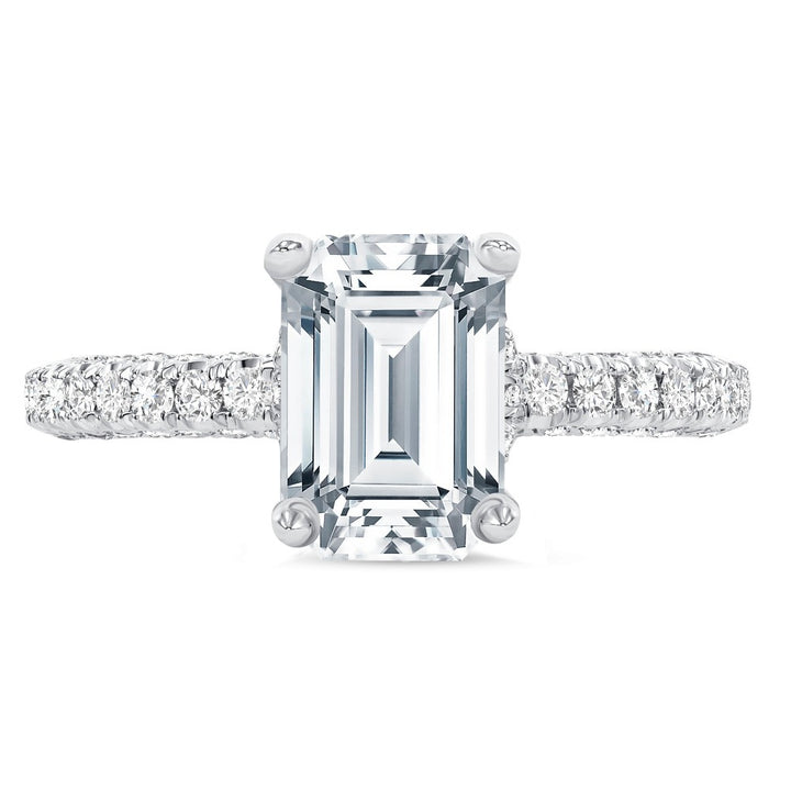 1.50 Carat Emerald Cut Hidden Halo with Brilliant Round Diamond Engagement Ring