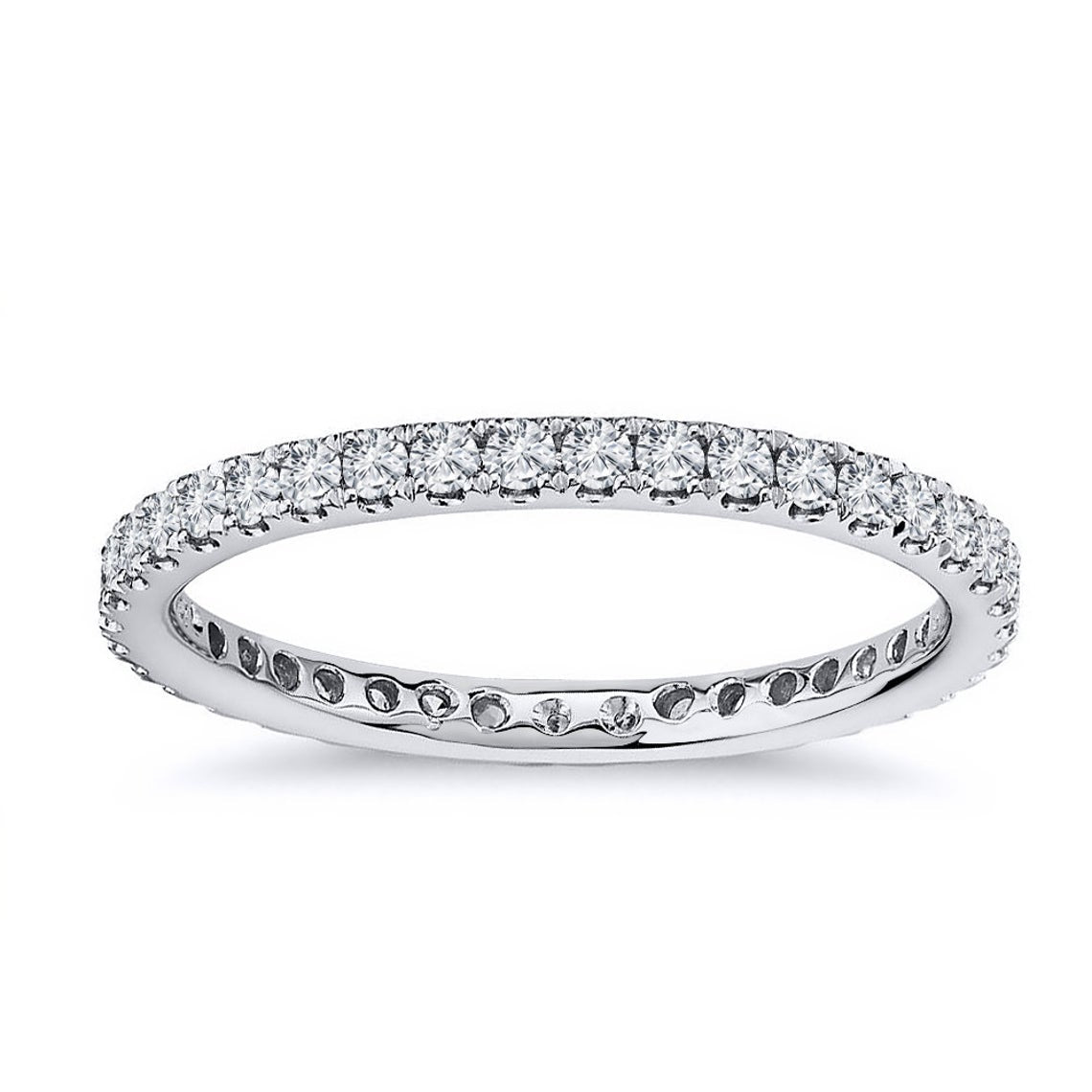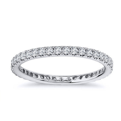 0.75 Carat prong setting round Cut diamond band G,SI1. 2 mm in width and a polish finish. Handcrafted in your choice of 14k Gold, 18k Gold or Platinum 950 setting. We also offer a 1-Year Layaway program. You can reach us at 1-888-967-5353 to speak to one of our jewelry specialist.